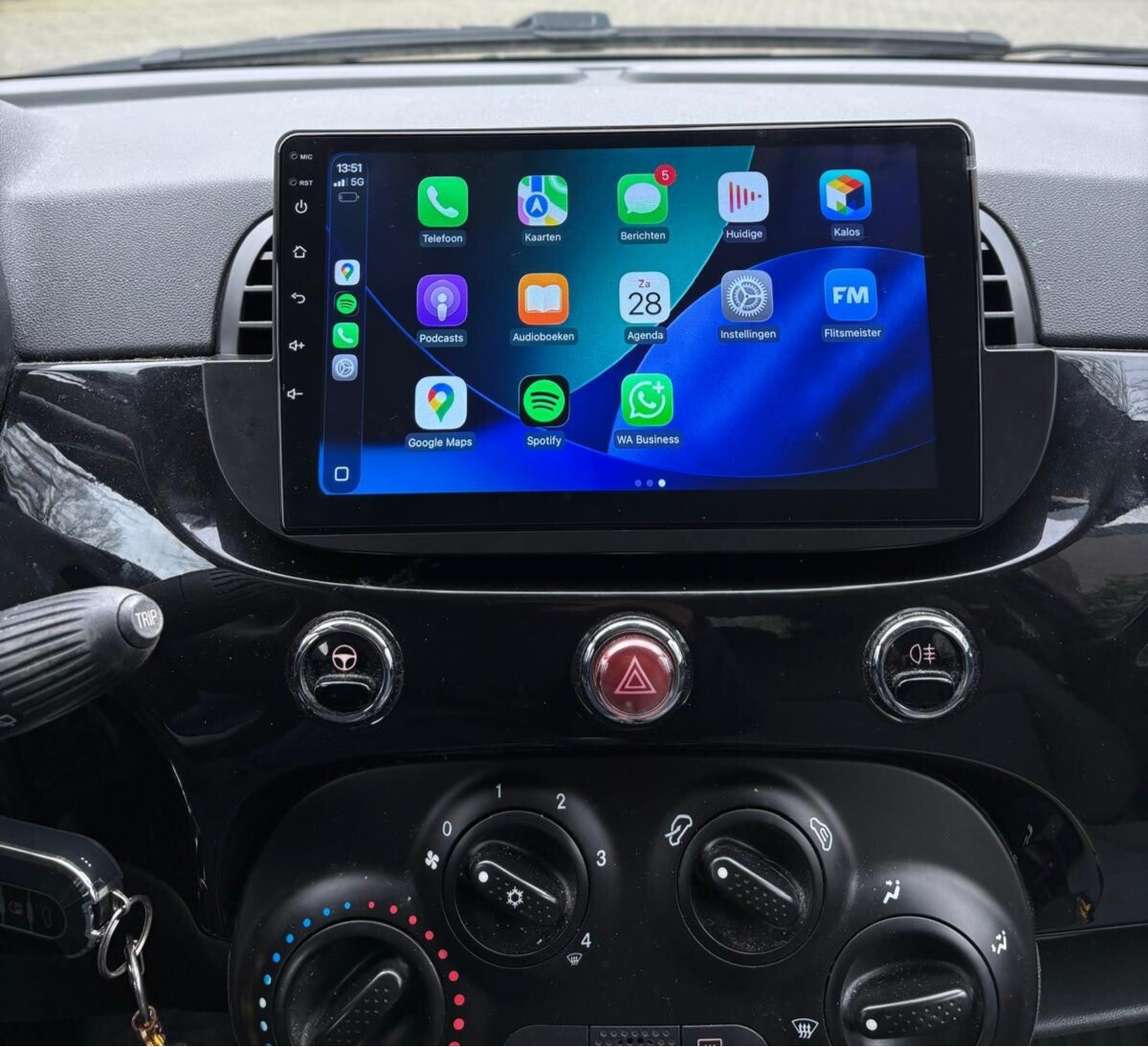 Geef jouw iconische Fiat 500 een moderne boost met Apple CarPlay. Verbind je iPhone of android telefoon en ervaar directe toegang tot navigatie, muziek, berichten en bellen, allemaal via het touchscreen, stuurbediening of Siri spraakbesturing. Rijd stijlvol én slim met de perfecte mix van retro design en hedendaagse technologie. CarPlay maakt elke rit leuker, makkelijker en veiliger. Stap in, verbind en geniet van een totaal nieuwe rijervaring!